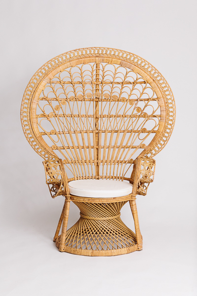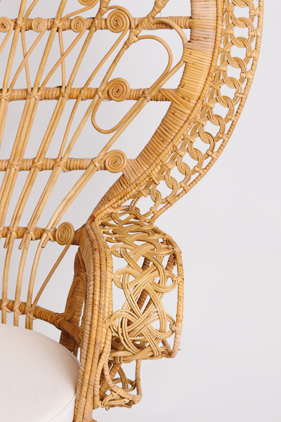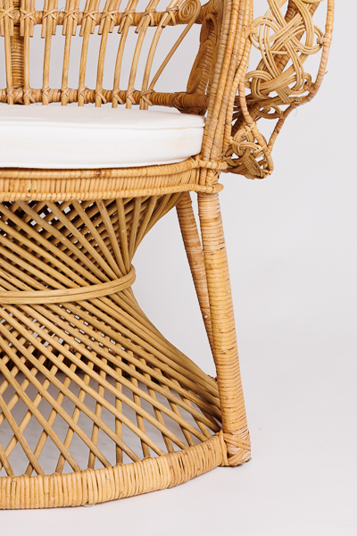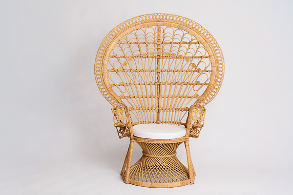 Fauteuil en rotin de type «Emmanuelle». Ce fauteuil est idéal pour la cérémonie laïque de votre mariage.